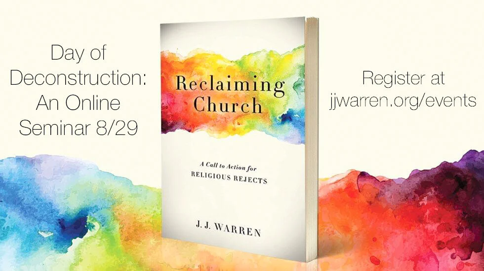 Your church or group can host any part of J.J.’s live seminar series, Day of Deconstruction. Based on his book, Reclaiming Church: A Call to Action for Religious Rejects, this Day of Deconstruction can focus on: